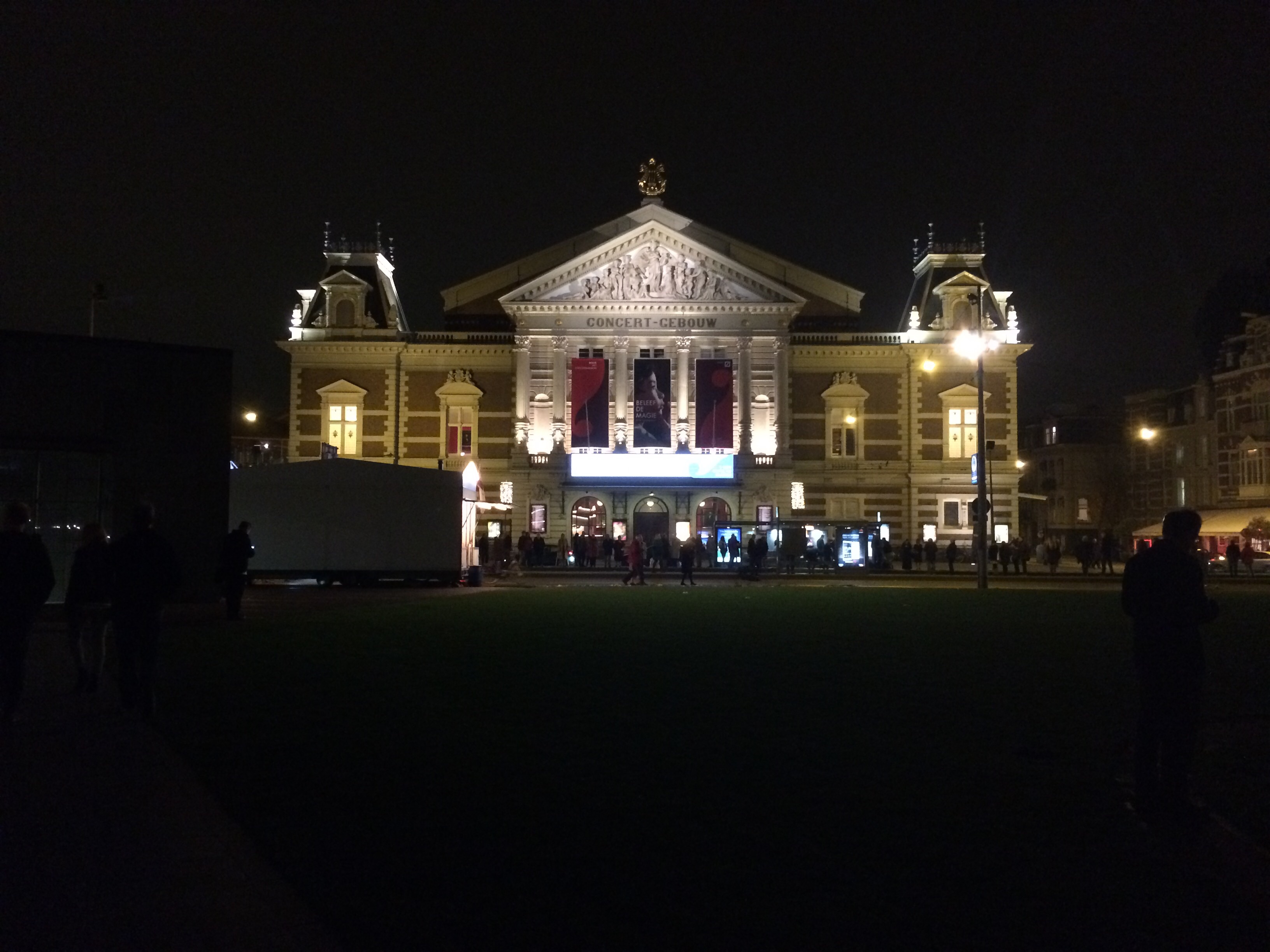 We had dinner at Harmsen on Utrechtstraat for the second time. The lamb hash is superb, although I had fish tonight because I needed a break from red meat. Afterwards we walked back to where the Van Gogh Museum is, past the Rijksmuseum, to the Concert Gebouw.