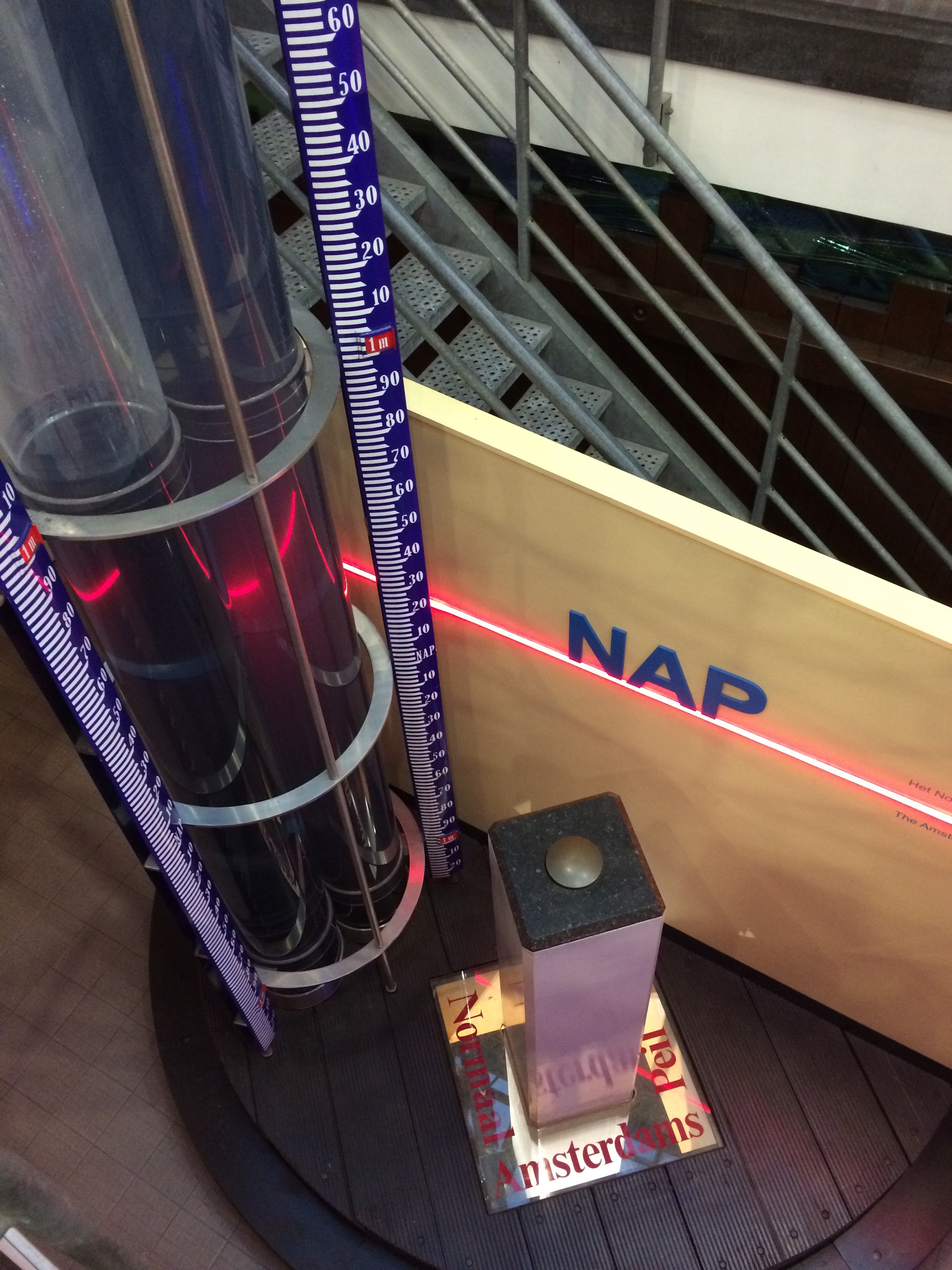 Back in Amsterdam, we went to find another thing Jim had read about, an exhibit about water levels in Amsterdam