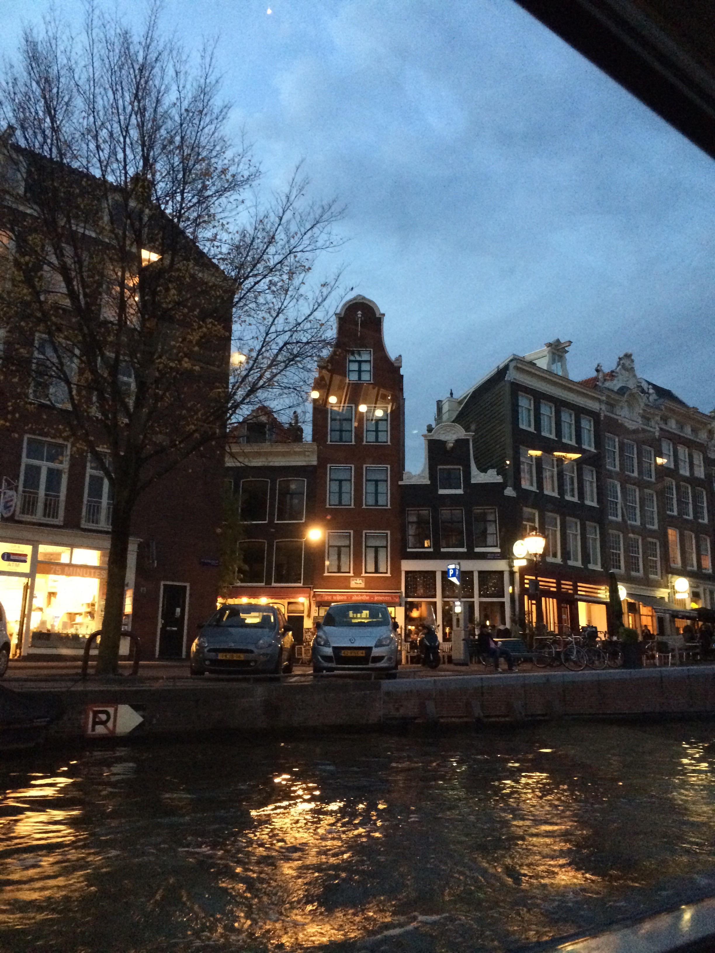 After the Houseboat Museum, we walked to a canal boat stop near the Anne Frank Museum and went around the north of the city and back to Waterlooplein. We realized that we hadn’t made a reservation and it was Friday night, around 7:00. We stopped in a few places on Utrechsestraat with no luck at all. Finally we thought we’d try Harmsen again, even though we were slightly embarrassed to be going back a third time. A woman who had waited on us once before at first said that they had no room. Then she worked on the owner to let us sit at a table that they normally use to hold bottles of wine and other things the waiters use on the upper level. We both had a third lovely meal at this great restaurant.